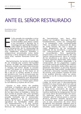 a visitar el taller del restaurador Pedro en la policromía que facilitan los análisis