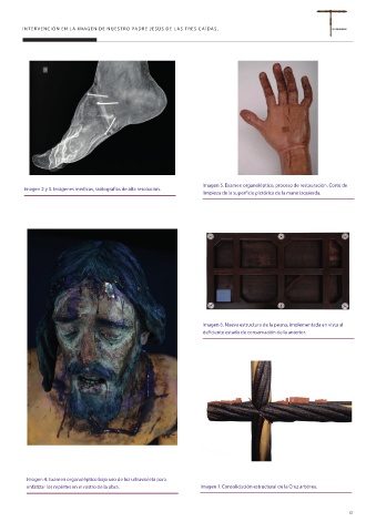 enfatizar los repintes en el rostro de la obra. Imagen 7. Consolidación estructural de la Cruz arbórea.