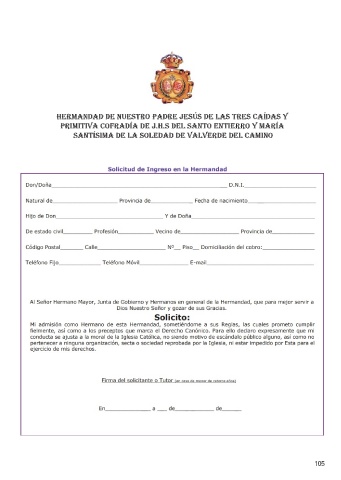 HERMANDAD DE NUESTRO PADRE JESÚS DE LAS TRES CAÍDAS Y PRIMITIVA COFRADÍA DE J.H.S DEL SANTO ENTIERRO Y MARÍA SANTÍSIMA DE LA SOLEDAD DE VALVERDE DEL CAMINO 105