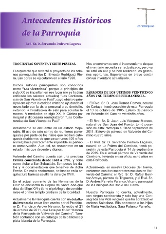 rable. El uso de este centro de reuniones parro- 2011. Estuvo de párroco en Valverde del Ca-